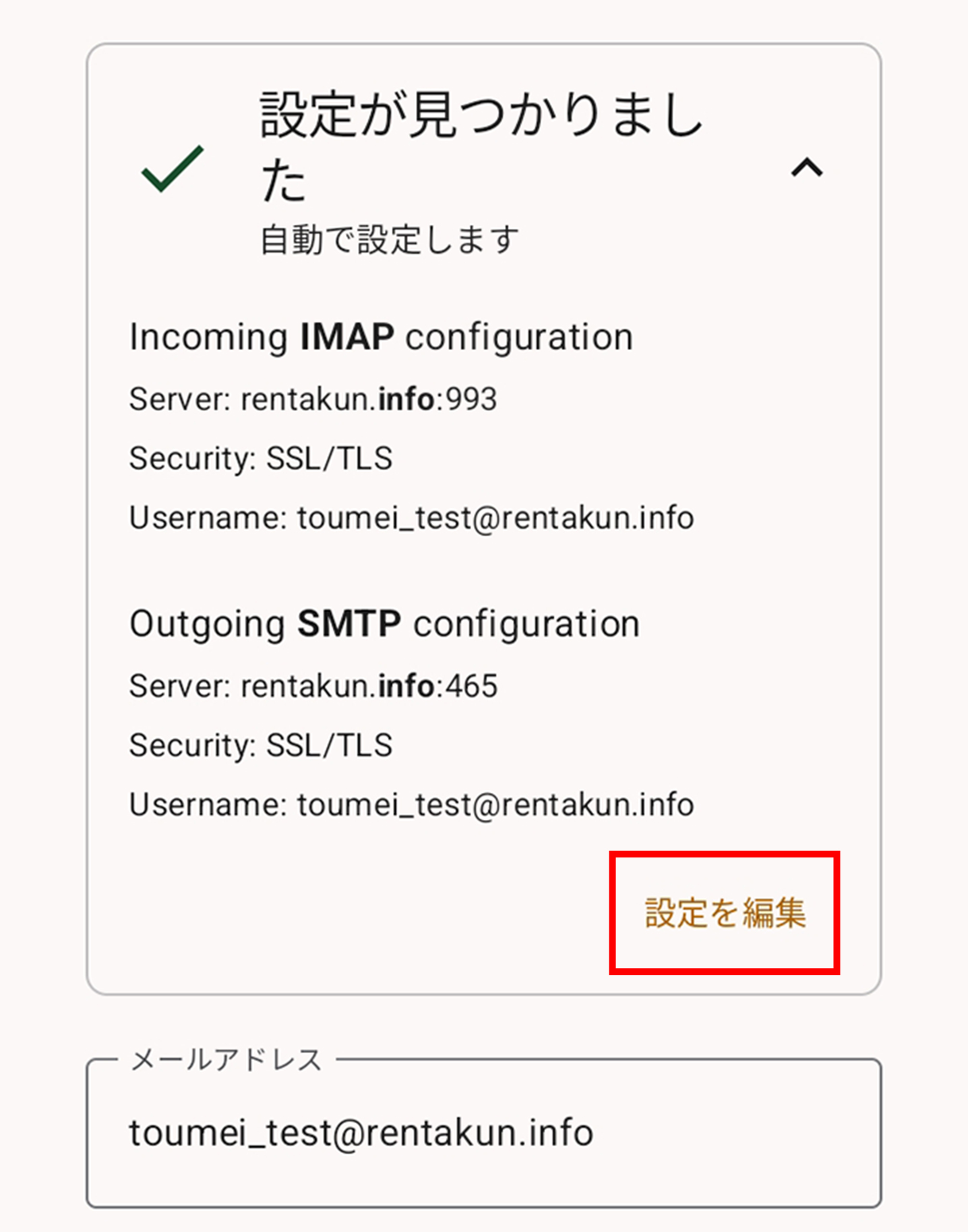 『設定が見つかりました』の場合は、【設定を編集】をタップします。
