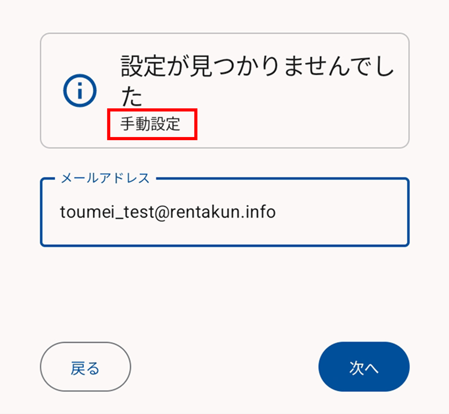 『設定が見つかりませんでした』の場合は、【手動設定】をタップします。