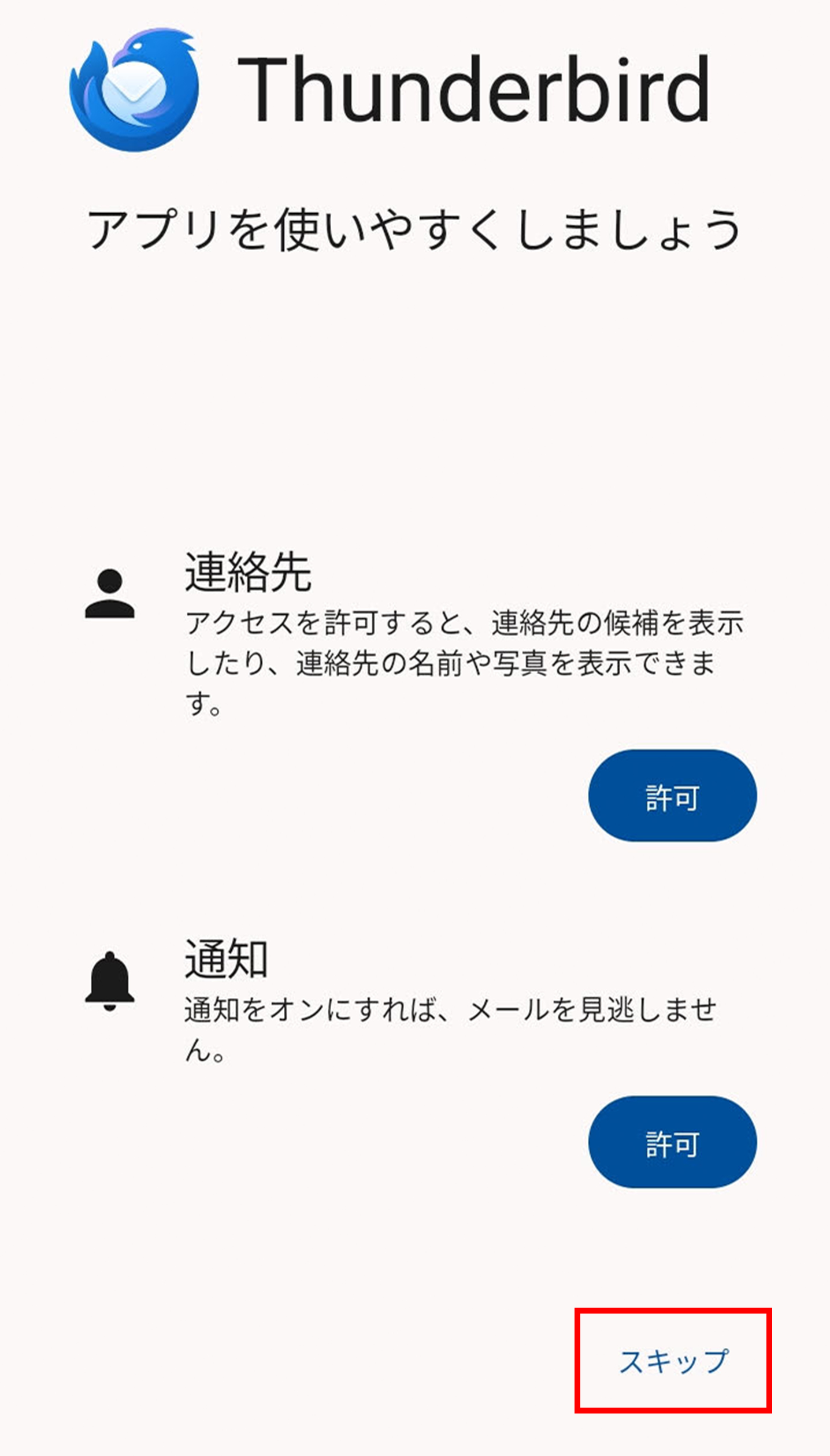 特に希望がなければ、そのまま【スキップ】をタップし設定完了です。